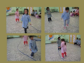 El documento presenta una breve conversación entre dos personas donde una invita a la otra a tomar café y menciona los nombres de Cleo, Teté y Maripí. La segunda persona pregunta quién está en la puerta y la primera responde que es una serpiente mientras menciona a Santa Teresita y el jardín de la alegría.