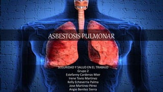 La asbestosis es una fibrosis pulmonar causada por la inhalación prolongada de fibras de asbesto. Las fibras penetran los pulmones y causan una reacción inflamatoria crónica que conduce a la formación de cicatrices en los pulmones. La asbestosis es más común entre trabajadores expuestos a asbesto en minas, fábricas de productos de asbesto y en trabajos de construcción e instalación. Los síntomas incluyen tos, disnea y crepitaciones pulmonares audibles. La gravedad de la enfermedad depende