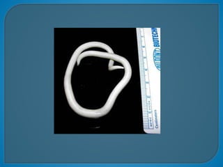 Ascaris lumbricoides es un nematodo parásito del intestino delgado humano muy frecuente en países en desarrollo. Se transmite por la ingestión de huevos que son eliminados en las heces y pueden sobrevivir meses en el suelo. Los síntomas incluyen dolor abdominal, diarrea, tos y dificultad para respirar. El diagnóstico se realiza encontrando huevos u gusanos adultos en las heces.