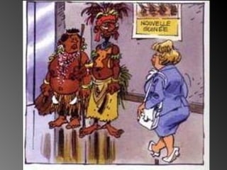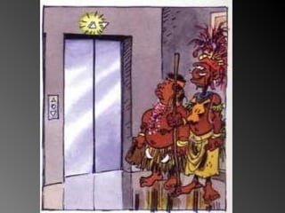 Una pareja de Melanesia viaja por primera vez en avión y visita un edificio moderno. No conocen lo que es un ascensor y el encargado los ayuda a familiarizarse con este medio de transporte vertical desconocido para ellos.