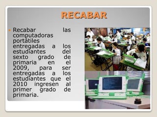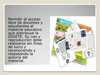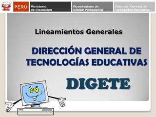 El documento presenta lineamientos sobre la integración de las tecnologías de la información y comunicación (TIC) en la educación básica regular. Describe los programas y funciones de la Dirección General de Tecnologías Educativas para promover el uso pedagógico de las TIC. También presenta recomendaciones para el uso de recursos tecnológicos como las aulas de innovación pedagógica.