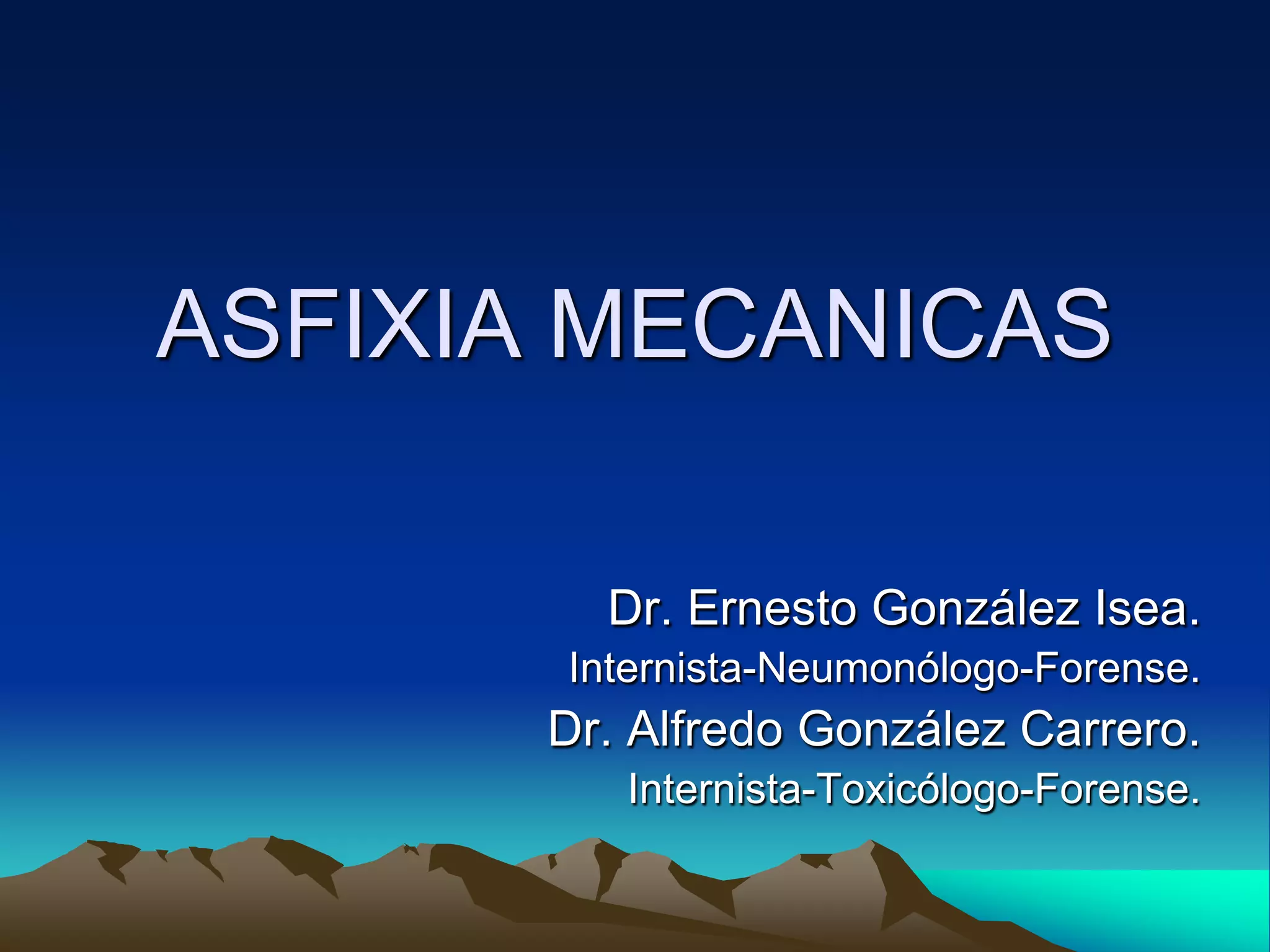 Este documento clasifica y describe las asfixias mecánicas, incluyendo la inmersión o sumersión, el ahorcamiento, la estrangulación y la sofocación. Define cada tipo de asfixia mecánica, describe sus mecanismos y características externas e internas. Explica las etiologías como accidentales, suicidas u homicidas. En resumen, provee una guía forense completa sobre las diferentes formas de asfixia mecánica y cómo identificarlas.