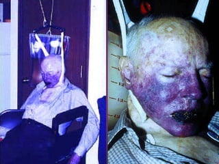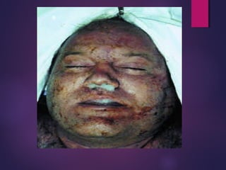 Este documento trata sobre asfixiología y describe diferentes tipos de asfixia como la sumersión, estrangulación, ahorcadura y sofocación. Explica los signos y síntomas de cada tipo de asfixia así como su fisiopatología. También cubre la asfixia química por monóxido de carbono, sus características, etiología, fisiopatología, cuadro clínico agudo y crónico, y hallazgos de la autopsia.