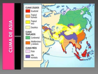 Asia es un gran continente situado en el este de Eurasia, con extensas llanuras en el norte, altas cordilleras en el centro y sur como el Himalaya y el Everest, y grandes penínsulas e islas en los océanos Índico y Pacífico. Presenta altas mesetas en el centro como el Tíbet, y una costa articulada con numerosas islas a lo largo del Pacífico, originadas por hundimientos continentales.