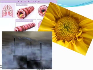 Este documento describe las características de la asma y la tuberculosis. La asma se caracteriza por la contracción espasmódica de los músculos lisos de los bronquios, mientras que la tuberculosis se caracteriza por zonas de fibrosis en los pulmones y una reducción del tejido pulmonar total. Estos efectos producen un aumento del trabajo respiratorio y una reducción del área de la membrana respiratoria.