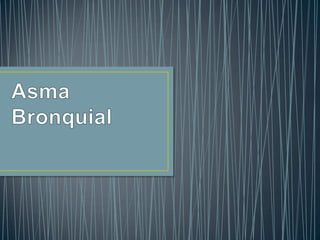 Este documento presenta la definición, clasificación, epidemiología, patología y diagnóstico del asma bronquial. El asma es un trastorno inflamatorio crónico de las vías respiratorias que conduce a episodios recurrentes de sibilancias, tos y dificultad para respirar asociados con obstrucción reversible de las vías aéreas. Su diagnóstico se basa en la historia clínica, examen físico y pruebas de función pulmonar.