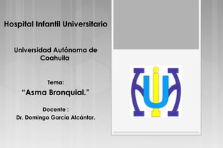 Este documento resume la asma bronquial, incluyendo su definición, fisiopatología, clasificación, criterios GINA para el diagnóstico y tratamiento. Explica que la asma es una enfermedad inflamatoria crónica de las vías respiratorias que causa obstrucción del flujo aéreo y síntomas como tos, sibilancias y disnea. Describe los diferentes tipos de asma según su gravedad y persistencia de síntomas, así como los medicamentos utilizados en el tratamiento como esteroides inhalados y sist