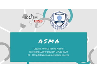 El documento describe la epidemiología, fenotipos, células y moléculas implicadas, síntomas, diagnóstico y tratamiento del asma. El asma es una enfermedad heterogénea caracterizada por inflamación crónica de la vía aérea causada por diversas células y mediadores. Existen varios fenotipos como el asma alérgica y no alérgica. El diagnóstico incluye espirometría y pruebas de broncodilatación/broncoconstricción. El tratamiento varía desde medidas no farmac