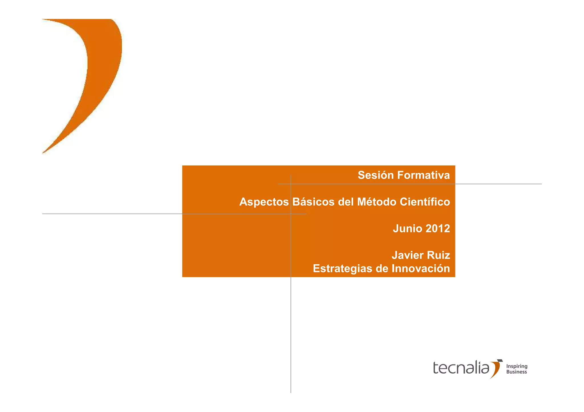 Este documento presenta los aspectos básicos del método científico, incluyendo las principales etapas como la definición del problema, formulación de hipótesis, observación, experimentación y conclusiones. También describe criterios clave para cada etapa como la relevancia del problema, precisión de las hipótesis, objetividad de la observación y control de variables en la experimentación. El objetivo es ofrecer una guía general sobre el proceso de investigación científica.