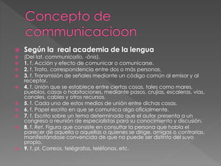 El documento define la comunicación y describe sus elementos clave. En resumen: