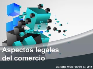 Este documento presenta un resumen de los aspectos legales del comercio. Explica las leyes y ordenamientos que regulan el comercio a nivel internacional, nacional y local. También describe los contratos comerciales, códigos de comercio y leyes que protegen a los consumidores, particularmente en el comercio electrónico.