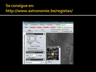 Este documento proporciona instrucciones para tomar fotografías astronómicas con una webcam modificada usando un telescopio y una computadora portátil. Explica cómo retirar la lente de la webcam y acoplarla al telescopio, y luego usar software gratuito para grabar videos y procesar las imágenes para obtener fotografías finales de objetos como la Luna, Venus y Marte.