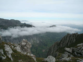 El documento lista varias rutas de montaña y lugares de interés en los Concejos de Asturias y la zona de Picos de Europa, incluyendo senderos, puertos de montaña, lagos, valles y picos como la Farrapona, Peña Rueda, Angliru y Naranjo de Bulnes.