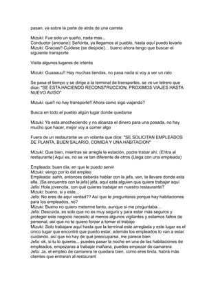 Este documento presenta la sinopsis de una historia de ficción que involucra a dos protagonistas principales, Raito y Mizuki. Mizuki llega a un pueblo buscando transporte y consigue trabajo en un restaurante. Una noche es secuestrada pero Raito, el encargado de limpieza del restaurante, la rescata. Más tarde, Raito derrota a una pandilla que intenta extorsionar al restaurante. La identidad secreta de Raito y sus actividades nocturnas dejan a Mizuki con curiosidad.