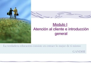 Este documento presenta información sobre la atención al cliente. Explica que el cliente debe estar en el centro del servicio y que la experiencia del cliente depende de los sentidos, emociones y conocimiento. También describe diferentes tipos de clientes y cómo comunicarse de manera efectiva con ellos para satisfacer sus necesidades y resolver problemas. El objetivo final es mejorar continuamente la calidad del servicio y la satisfacción del cliente.