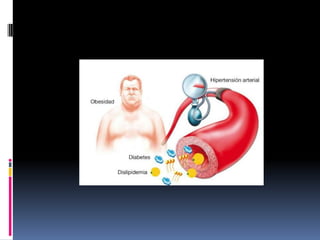 La aterosclerosis es una enfermedad vascular crónica que causa la obstrucción progresiva de las arterias debido a la formación de placas de ateroma. Se origina por una disfunción endotelial que provoca inflamación y trombosis. Los principales factores de riesgo son la hipercolesterolemia y la dislipidemia. El tratamiento busca controlar los factores de riesgo y prevenir complicaciones cardiovasculares.