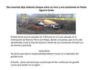 El documento presenta resúmenes de 4 noticias diferentes. La primera trata sobre una niña de 11 años que desmiente la versión de su madre sobre su embarazo. La segunda habla sobre un choque fatal entre un tren y una camioneta. La tercera es sobre el matrimonio entre personas del mismo sexo. Y la cuarta informa sobre una sanción a una empresa por contaminar el mar. Cada noticia incluye un comentario y una propuesta de solución.