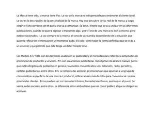 Este documento presenta cuatro campañas publicitarias, dos de alcance masivo (ATL) y dos dirigidas a grupos específicos (BTL). Describe el tono, estilo, mensaje clave, medio y opinión de cada campaña. La primera promueve Old Spice usando humor con un oso, la segunda de Frigo Chuches personifica golosinas como helados, la tercera crea una ilusión con un perro gigante para Frontline y la cuarta relaciona Kellogg's con el fútbol durante el verano.
