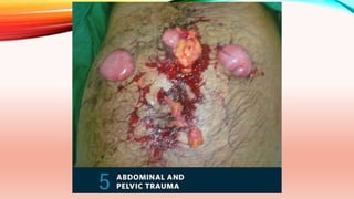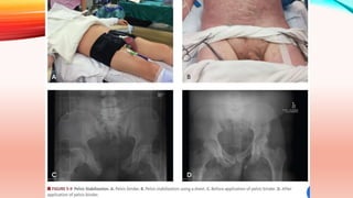 El primer documento presenta 5 preguntas sobre el manejo de pacientes traumatizados. La quinta pregunta trata sobre un paciente con estridor inspiratorio y sospecha de lesión en la columna cervical. La opción más apropiada es mantener la inmovilización alineada y establecer una vía aérea definitiva.