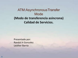 El documento resume la historia y funcionamiento de la tecnología ATM (Modo de Transferencia Asíncrona). ATM fue diseñada para el transporte de datos a alta velocidad sobre fibra óptica mediante el uso de células de tamaño constante. ATM ofrece calidad de servicio mediante la negociación de parámetros como la tasa de bits, retardo y pérdida de células. La tecnología también permite la multiplexación eficiente del ancho de banda entre diferentes tipos de tráfico como voz, video e imágenes.