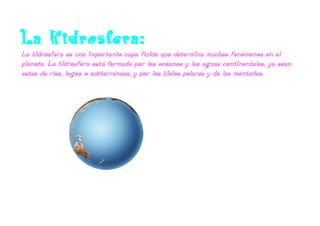 La atmósfera mantiene el calor del Sol y protege la Tierra de meteoritos, filtra la radiación solar dañina y contiene gases necesarios para la vida. Se extiende unos 500 km desde la superficie terrestre y está compuesta por cinco capas: la troposfera, estratosfera, mesosfera, termosfera y exosfera.