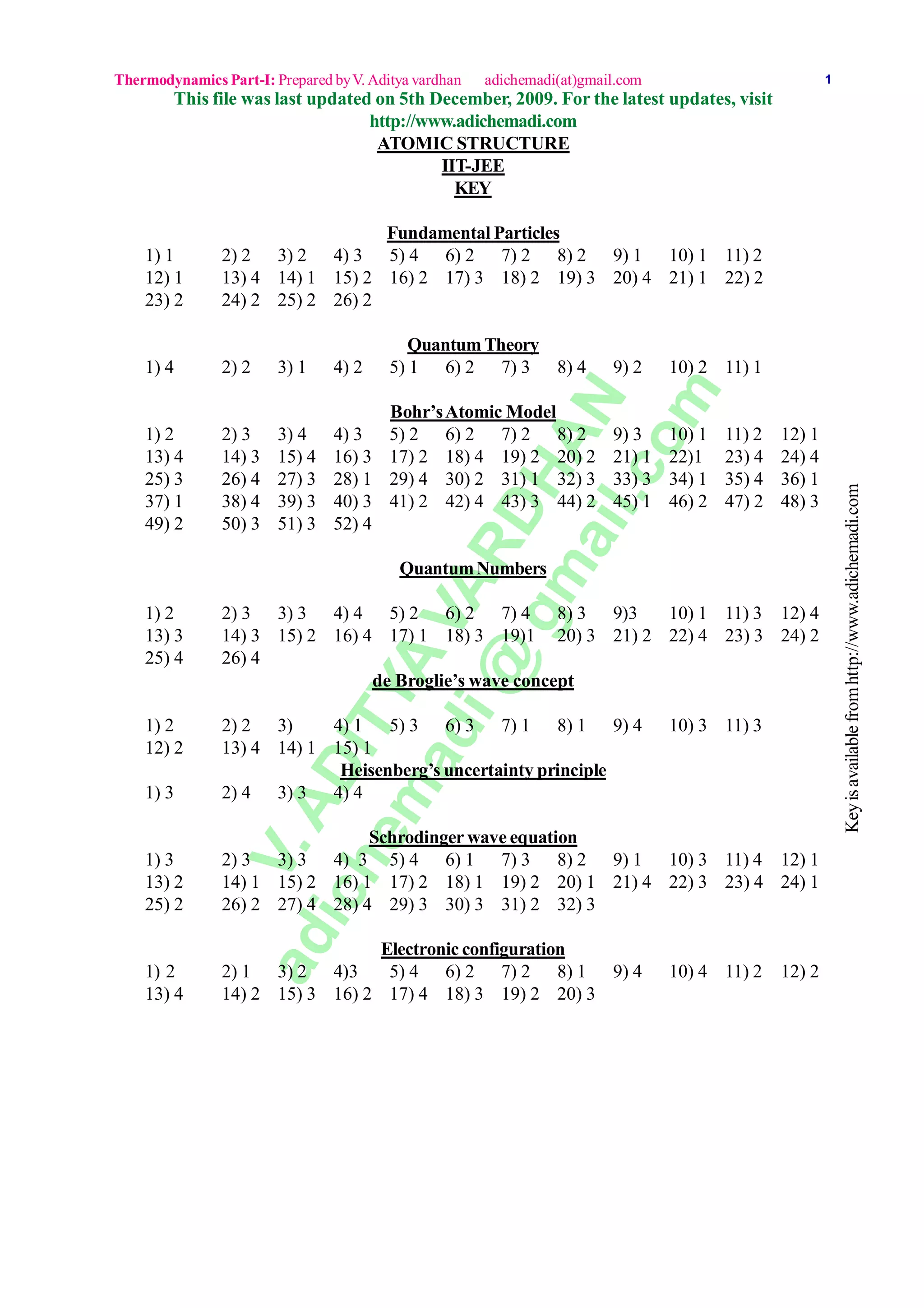 Este documento proporciona información sobre conceptos clave de la estructura atómica como partículas fundamentales, teoría cuántica, modelo atómico de Bohr, números cuánticos, concepto ondulatorio de De Broglie, principio de incertidumbre de Heisenberg, ecuación de onda de Schrödinger y configuración electrónica. Contiene preguntas y respuestas sobre cada uno de estos temas.