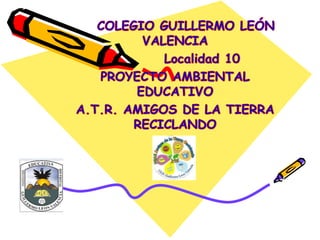 Este documento presenta el proyecto ambiental de un colegio con el objetivo general de sensibilizar sobre las consecuencias de la contaminación y la necesidad de cuidar el ambiente. Los objetivos específicos incluyen concientizar sobre el calentamiento global, promover las 4R, reciclar papel, involucrar a la comunidad en el manejo de residuos y retomar la huerta escolar. El documento describe las actividades realizadas y los logros obtenidos en el desarrollo del proyecto a lo largo de los años.