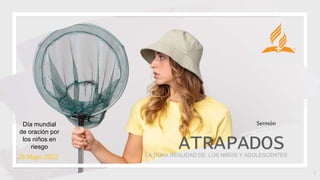 Este documento habla sobre la dura realidad que enfrentan los niños y adolescentes en el mundo actual. Menciona varios factores que atrapan a los jóvenes como las redes sociales, los videojuegos, la comida chatarra, la violencia, la pobreza y la guerra. Explica que Satanás usa redes sutiles para atrapar a los incautos y aprovecha cualquier oportunidad para capturar almas. Finalmente, propone formas de proteger a los jóvenes como ser protectores activos, observadores intencionados, modelos congru