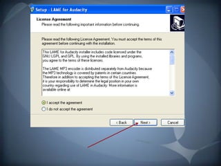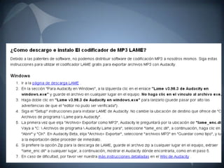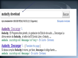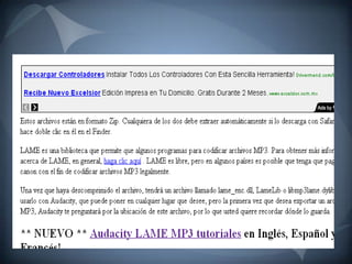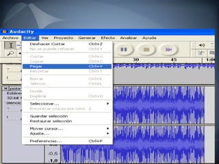 Este documento proporciona instrucciones paso a paso para usar un software de edición de audio gratuito para grabar voz, importar música, recortar pistas de audio, mezclar pistas y guardar el archivo de audio final. Explica cómo grabar audio, importar archivos MP3 y WAV, ajustar el volumen y longitud de las pistas, mezclar varias pistas juntas, y guardar el archivo de audio mezclado y editado.