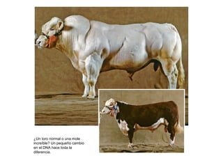 El documento resume el contenido del capítulo 9 sobre herencia en un libro de biología. Explica que los científicos descubrieron que los genes están compuestos de ADN a través del experimento de transformación bacteriana de Griffith y Avery. Describe la estructura del ADN como una doble hélice formada por dos cadenas unidas por puentes de hidrógeno entre las bases nitrogenadas complementarias. Finalmente, señala que la duplicación del ADN asegura la constancia genética al producir dos moléculas idénticas de ADN durante la