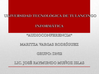 La audioconferencia permite la interacción en tiempo real entre grupos de personas en diferentes lugares mediante telefonía de alta calidad. Su uso se ha amplificado en negocios y educación, aunque presenta desafíos como la dependencia tecnológica y la necesidad de un moderador. A pesar de sus limitaciones, es una herramienta económica y efectiva para asegurar que todos los participantes reciban la misma información.