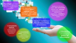 El documento describe la importancia de auditar la información dentro de las organizaciones para identificar duplicidades, carencias e inconsistencias. Explica que es necesario gestionar la información teniendo en cuenta las necesidades de los empleados y analizando la información disponible. También detalla las 6 fases de la metodología para realizar auditorías de información: planificación, recolección de datos, análisis, evaluación, comunicación de recomendaciones e implementación de las mismas.