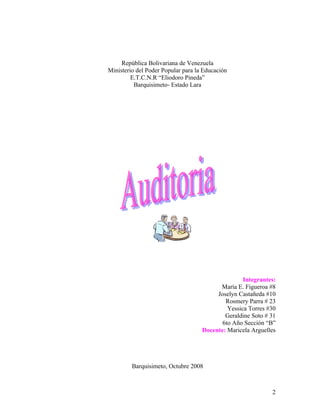 El documento resume los conceptos clave de la auditoría. Describe la clasificación de la auditoría interna y externa, las normas generales de auditoría que incluyen la capacidad profesional y la objetividad e independencia del auditor, y los tipos de dictamen que puede emitir un auditor.