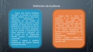 El documento aborda la definición y la importancia de la auditoría, destacando su papel en la verificación de la información financiera, administrativa y operacional de una entidad. Se discuten las diferentes tipos de auditoría informática, la seguridad en el ámbito de la informática, y el perfil del auditor informático. Se enfatiza la necesidad de auditorías para abordar los avances tecnológicos y asegurar un control eficaz en los sistemas de información.