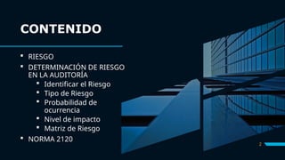 y alcance de los procedimientos de auditoría a aplicar) estaría