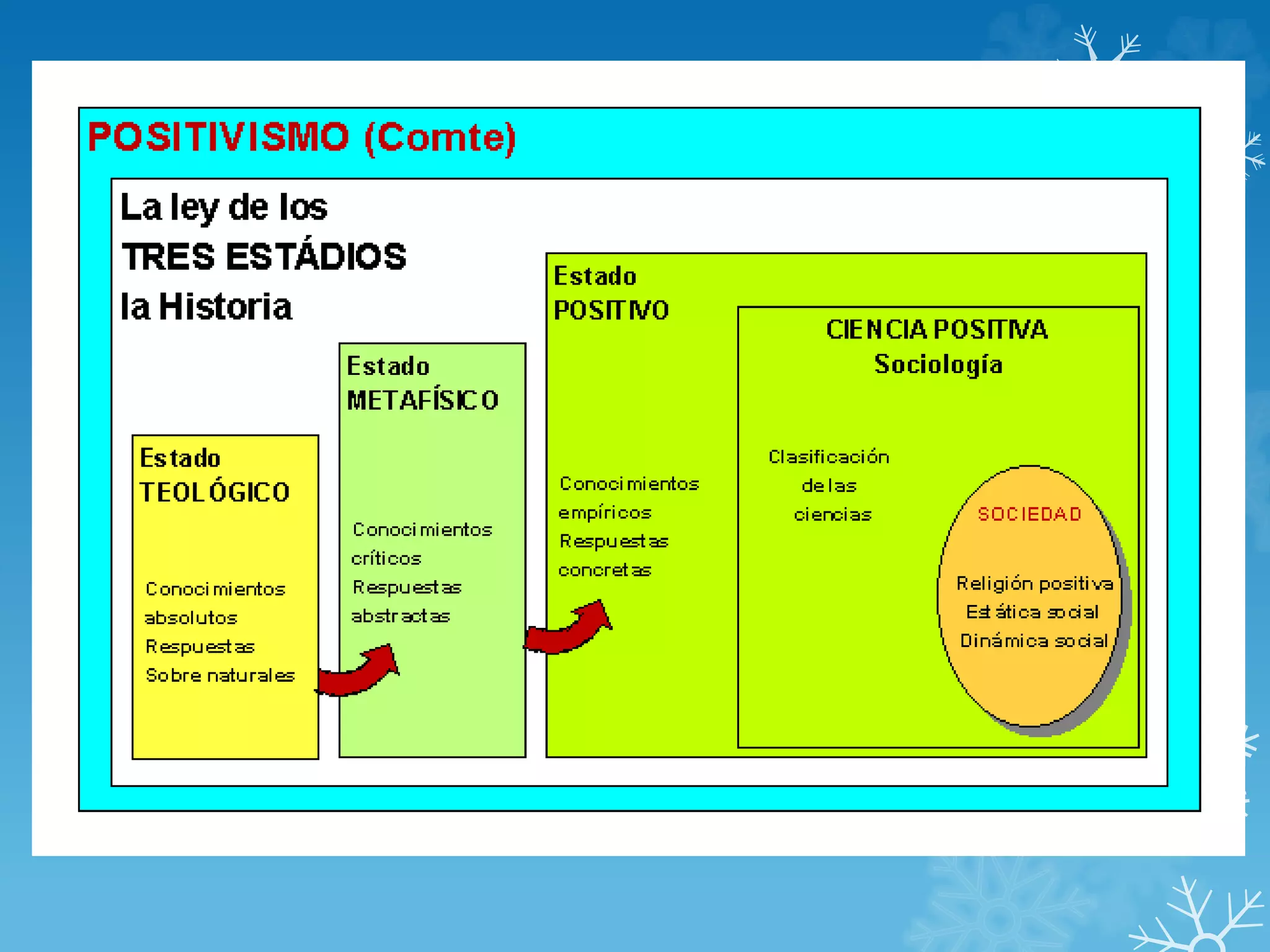 El documento describe la "Ley de los Tres Estados" que propone que la humanidad ha pasado por tres estados en su comprensión del mundo: 1) Un estado teológico o ficticio caracterizado por el fetichismo y el politeísmo, 2) Un estado metafísico o abstracto, y 3) Un estado positivo o científico basado en hechos observables.