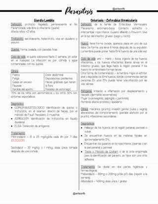 1) La giardiasis es causada por el protozoo Giardia lamblia. Afecta principalmente a niños menores de 5 años y causa síntomas como diarrea, dolor abdominal, gases y malestar estomacal.