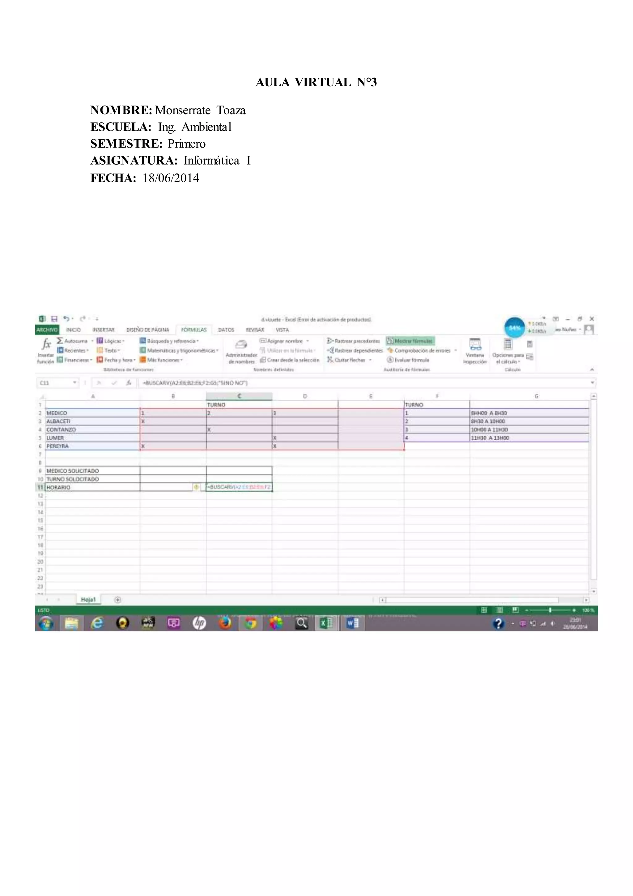La estudiante Monserrate Toaza de la Escuela de Ingeniería Ambiental se encuentra cursando el primer semestre de Informática I. El registro del aula virtual corresponde al 18 de junio de 2014.