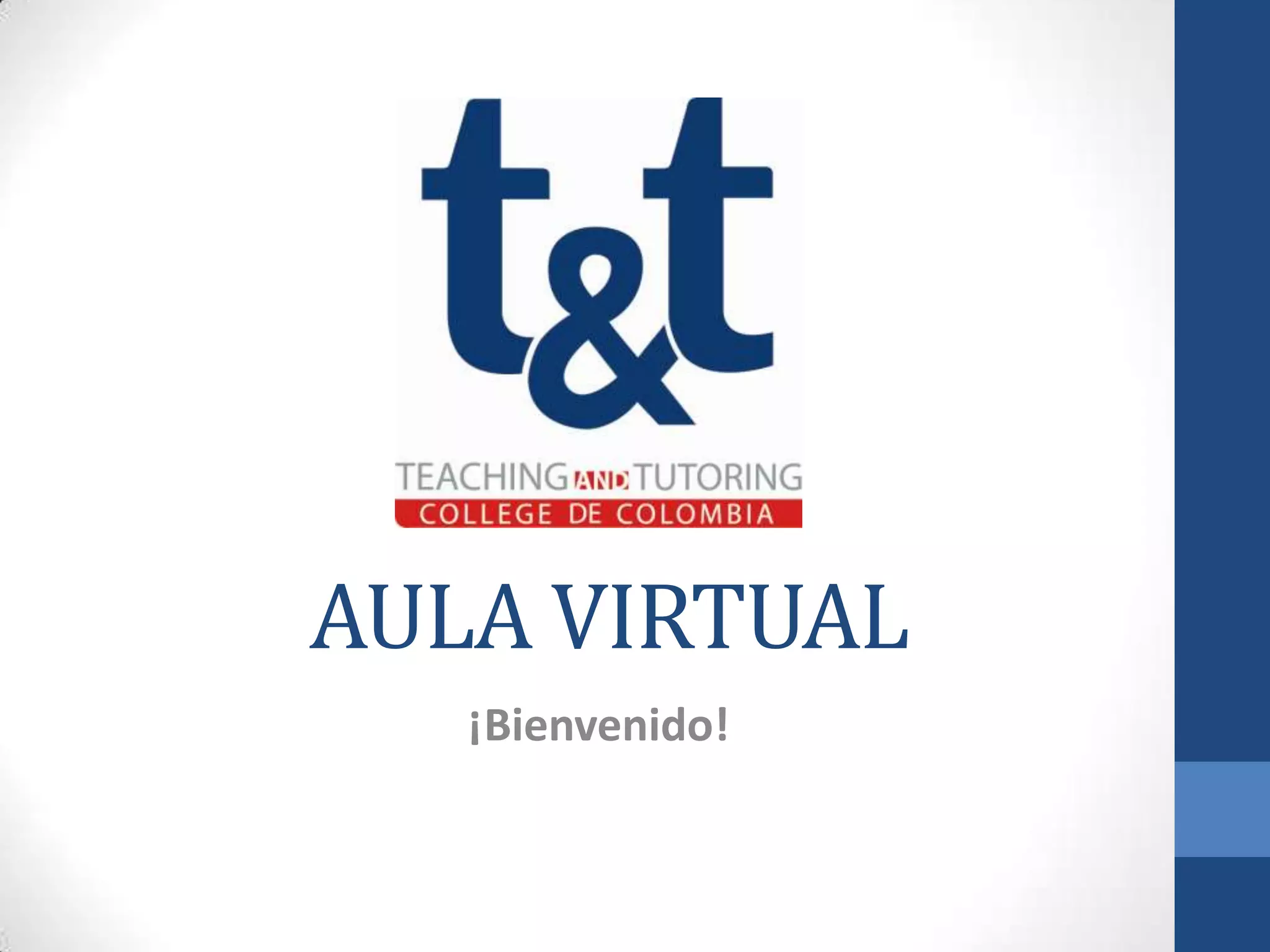 El documento presenta el Aula Virtual T&T, un nuevo escenario de educación virtual creado para promover competencias básicas, ciudadanas y tecnológicas en estudiantes. El aula utiliza objetos virtuales de aprendizaje basados en la interacción, colaboración, aprendizaje experiencial, uso de la tecnología y el juego. La educación ahora se centra en el autoaprendizaje y el estudiante es responsable de su propio aprendizaje, con el maestro como facilitador.