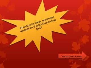 Este documento proporciona instrucciones paso a paso para configurar el perfil del usuario y participar en foros y comunicarse con profesores y compañeros en una plataforma de aprendizaje virtual. Explica cómo acceder a la plataforma, actualizar la información personal y la imagen de perfil, ver los cursos asignados, participar en foros de discusión, enviar y recibir mensajes, y completar y enviar actividades.