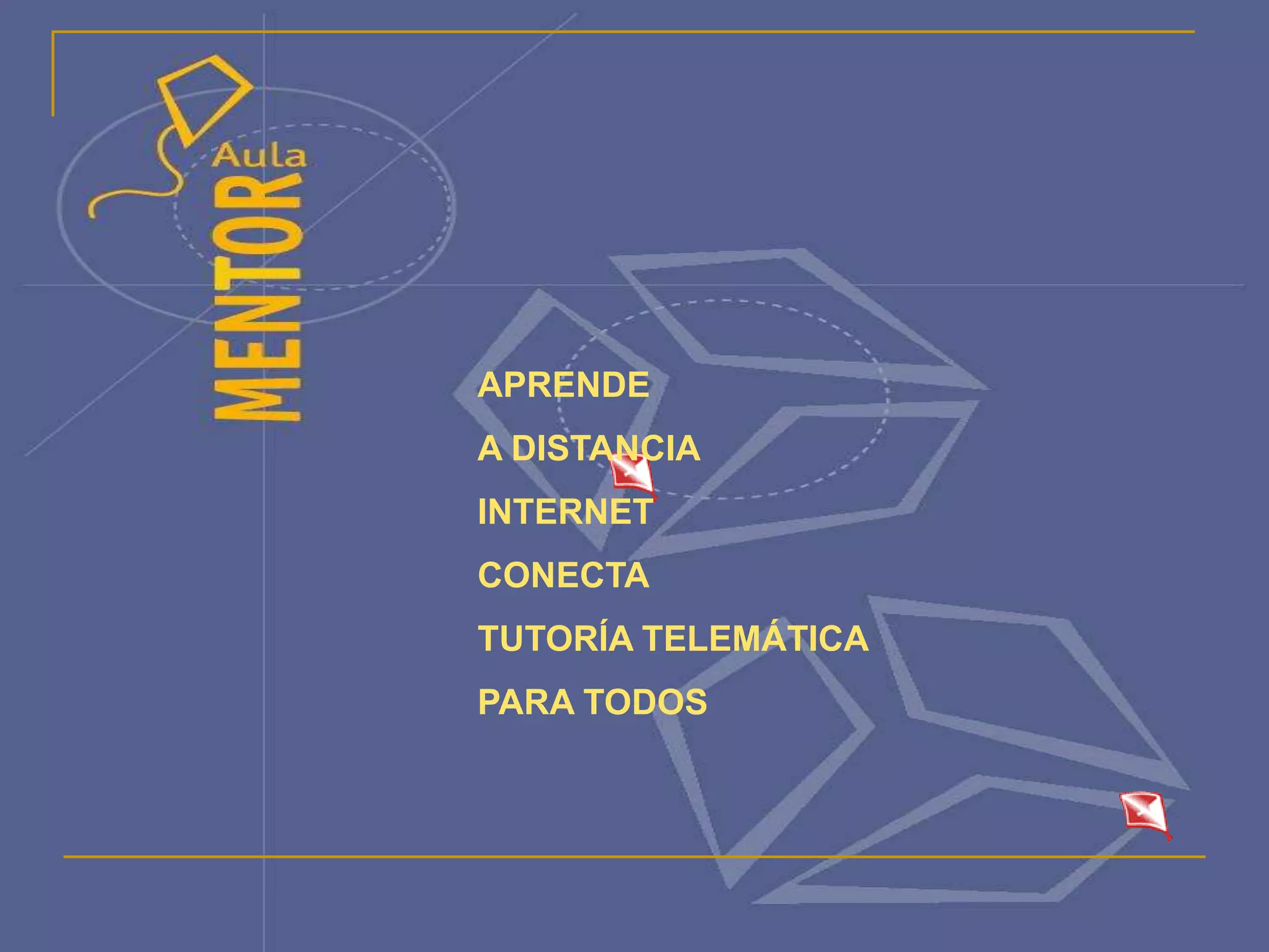 Aula Mentor es un sistema de formación abierto y flexible basado en Internet que ofrece más de 90 cursos con tutoría telemática. Los estudiantes pueden aprender a su propio ritmo desde su casa u otros lugares utilizando materiales en línea y comunicándose con tutores, y al completar con éxito un curso reciben un certificado expedido por el gobierno.
