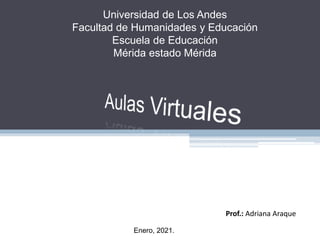 El documento aborda la enseñanza en línea a través de aulas virtuales, destacando su uso en clases presenciales, semipresenciales y a distancia, con un enfoque en el autoaprendizaje del alumno y el papel del docente como facilitador. Se exploran las ventajas del aula virtual, como el acceso a recursos educativos y la promoción del aprendizaje colaborativo, así como las secciones que componen el aula. También se presenta Google Classroom como una herramienta que mejora la organización y la interacción en el proceso educativo.