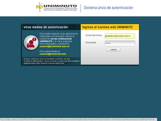 El documento describe las características principales de las aulas virtuales de Uniminuto. Explica cómo iniciar sesión con el correo institucional y contraseña, y luego muestra las opciones disponibles en el área personal para modificar el perfil, ver los cursos matriculados, y acceder a las actividades y calificaciones de cada curso.