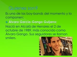 Este documento describe a Auryn, una boy band española formada en 2011 compuesta por 5 miembros. Alcanzaron éxito comercial con sus álbumes "Endless Road, 7058" en 2011 y "Anti-Heroes" en 2013. Han recibido varios premios como Mejor Grupo Español y han realizado varias giras musicales y el proyecto pionero MyCampAuryn.