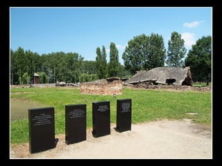 El campo de concentración de Auschwitz II (Birkenau) se construyó en 1941 a unos 3 km de Auschwitz I, tenía una extensión de 2,5 km por 2 km y estaba dividido en varias secciones separadas. Su objetivo principal era el exterminio de prisioneros mediante 4 crematorios con cámaras de gas que podían quemar hasta 4,756 cadáveres diarios. La mayoría de los prisioneros llegaban en tren y a veces eran enviados directamente a las cámaras de gas.