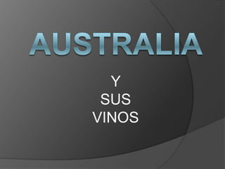 Este documento resume la industria vitivinícola de Australia. Australia se ha posicionado como el tercer productor de vinos del Nuevo Mundo y ha tenido una rápida evolución de calidad en las últimas décadas. La historia vitivinícola de Australia comenzó a finales del siglo XVIII y la producción y exportaciones han aumentado significativamente desde la década de 1990. Las principales regiones vitivinícolas son Nueva Gales del Sur, Australia Meridional, Victoria y Australia Occidental. Las uvas más cultivadas son Sh