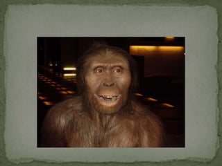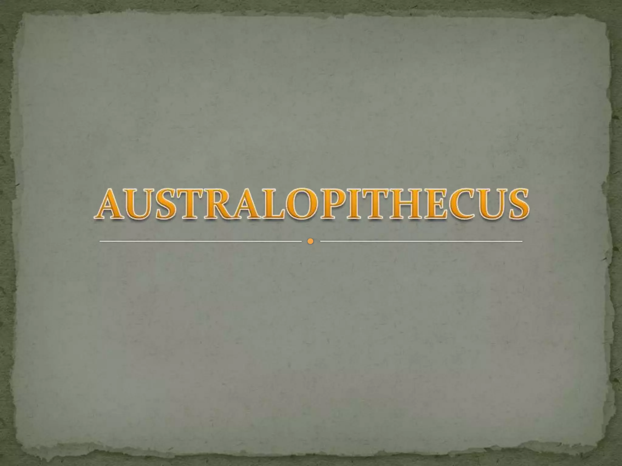Australopithecus fue un género de homínidos bípedos que vivió en África hace entre 4 y 2 millones de años, con un tamaño cerebral similar a los grandes simios. Algunas especies como A. afarensis se cree que fueron ancestros del género Homo. Vivían en zonas forestales y tropicales de África oriental y central, se desplazaban en posición erguida y se alimentaban de frutos y hojas.