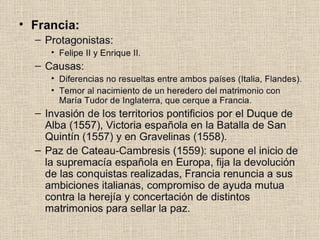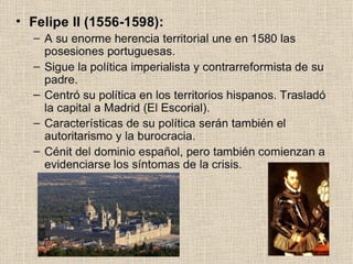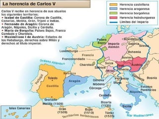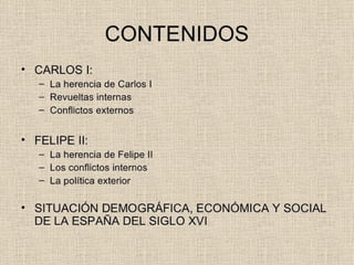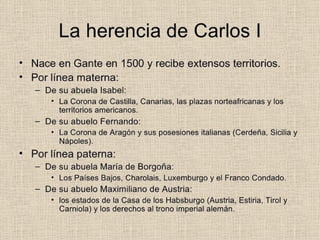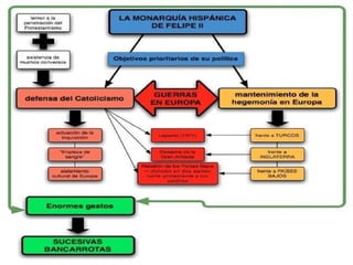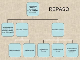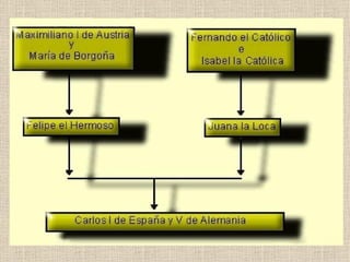 El documento presenta un árbol genealógico de la Casa de Austria que gobernó España y parte de Europa entre los siglos XV y XVII. Muestra las relaciones familiares entre los monarcas españoles de la época, como Felipe I, Juana de Castilla, Carlos I, Felipe II, Felipe III y Felipe IV, así como sus cónyuges e hijos. Permite entender la compleja red de parentescos dinásticos que caracterizó a esta dinastía.