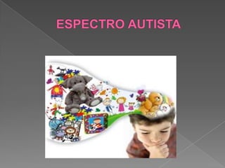 El documento describe los criterios de diagnóstico del autismo según el DSM-IV, incluyendo la presencia de características en interacción social, comunicación y juego simbólico antes de los 3 años. También discute las causas genéticas y ambientales del autismo, así como diferentes teorías sobre su origen y manifestaciones clínicas como retraso en el desarrollo y comportamientos repetitivos. Finalmente, analiza tratamientos y pronósticos para personas con autismo.