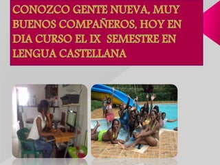 Este documento describe la educación y los intereses de una persona. Asistió a la escuela preescolar, primaria y secundaria y actualmente está en la universidad viviendo nuevas experiencias. Disfruta de las fiestas, escuchar música, dormir, aprender cosas nuevas y jugar bingo. Conoció a algunos amigos en la secundaria que eran divertidos.